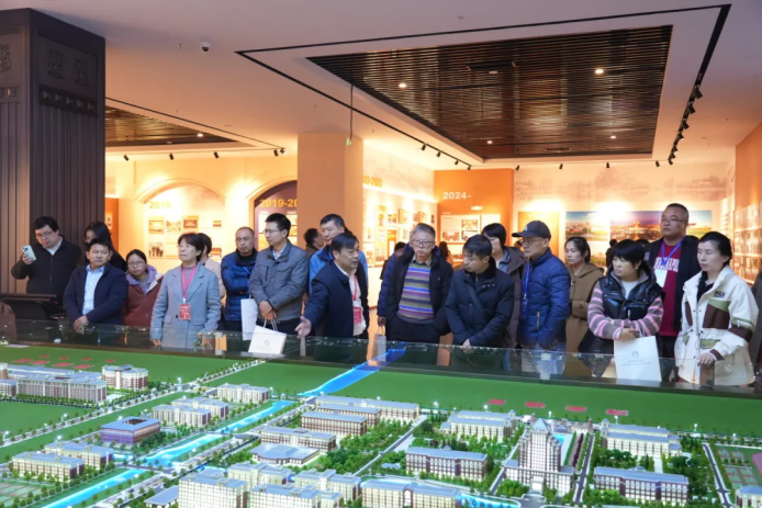 会后,PA真人视讯科技集团董事长张福德、总经理唐佩随队和与会人员一起参观了南通理工学院的数智展馆、张謇教育文化馆等地并合影留念。